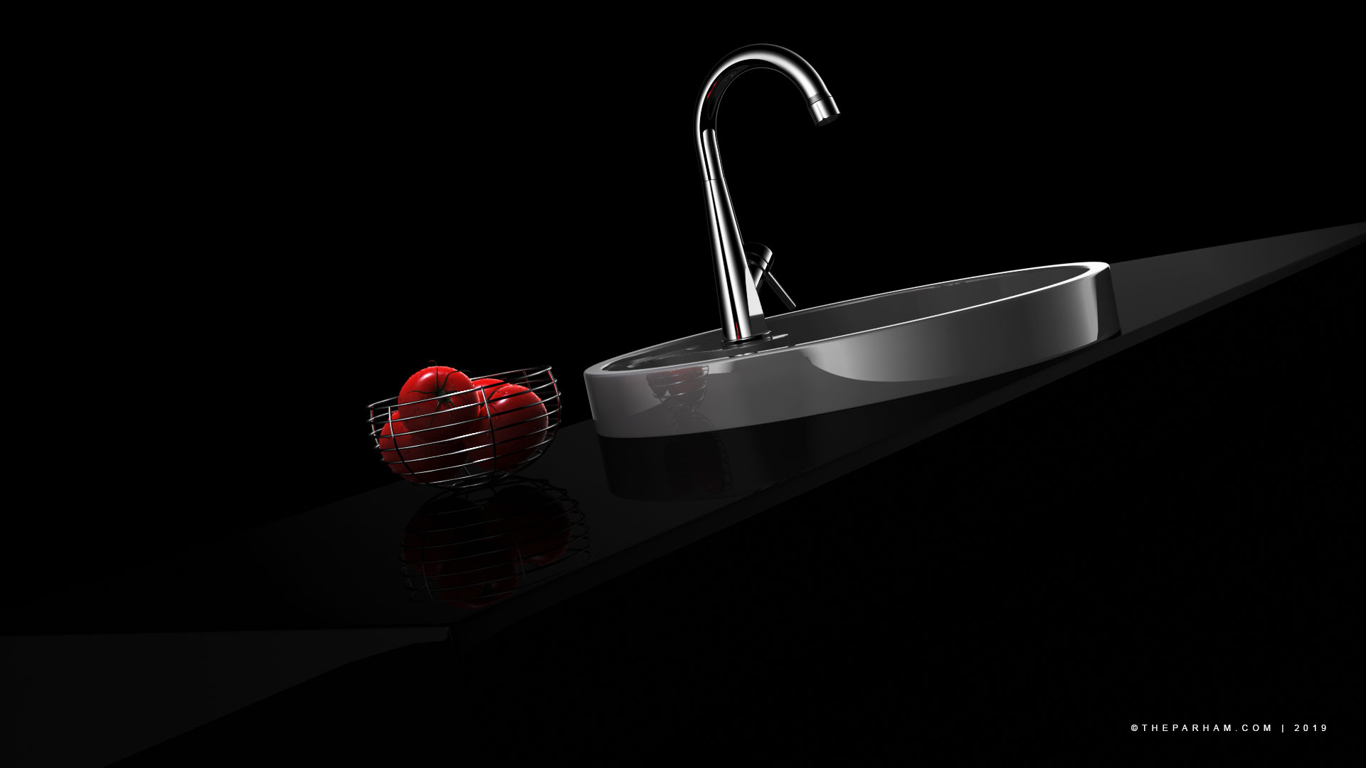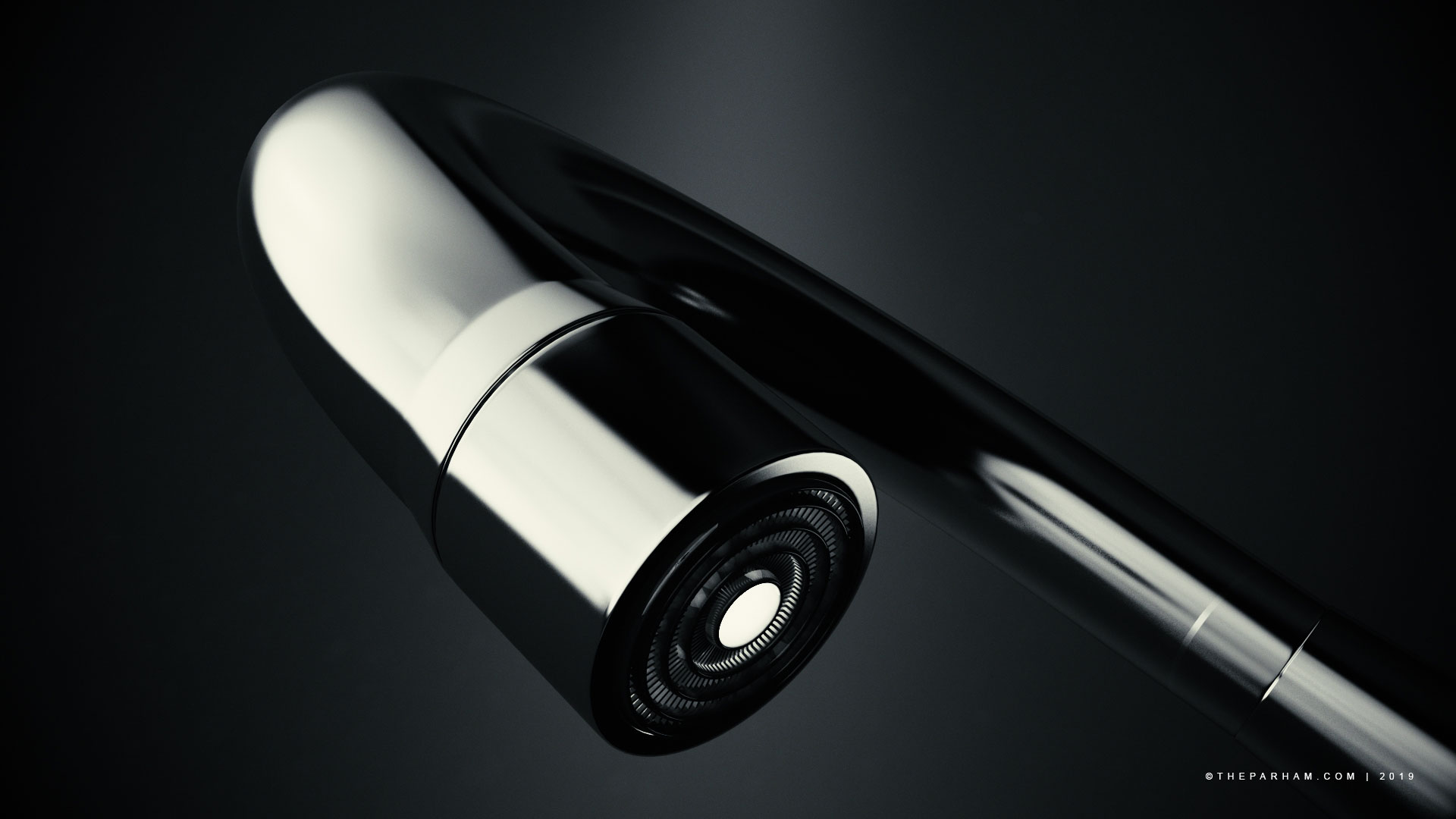 The faucet is 3d modeled after the referenced product to present a detailed examinable 3d representation for the revealing process.